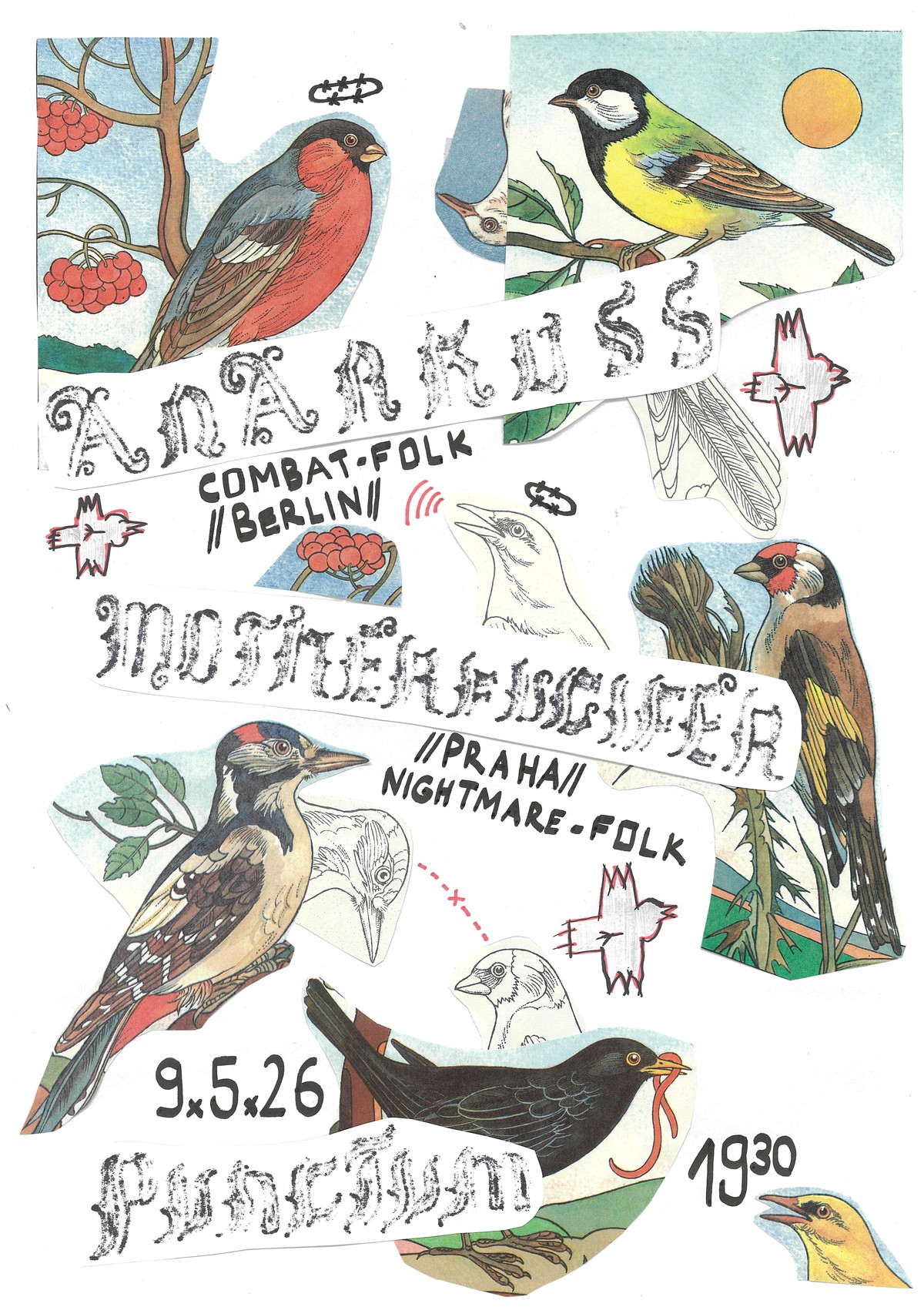 ANARKUSS is a Berlin-based band composed of AL (who’s played in bands like MILEMARKER, HELLBENDER and CHALLENGER) and ANNEEE (who’s played in bands like BIG EATER and CAREBENDER). Their music has been described as “combat folk” and “experimental acoustic punk.” They have released two tapes on their own label and a self-titled CD/CS on Exotic Fever Records (Philadelphia, USA). The recordings are a documentation; the real point of the band is to play live. The motivation is to share music and ideas, connect with like-minded people, and participate in strengthening the infrastructure of underground alternative culture that opposes the mainstream.anarkuss.bandcamp.comMotherfucifer is Prague based dark folk duo with roots in the local DIY punk scene. Instead of epigonism of traditional folk music, they explore sounds and stories of their own lived myths. Their album „Klid spících“ was released by the legendary Prague label Silver-rocket.https://motherfucifer.bandcamp.com/album/klid-sp-c-chEntry: TBA