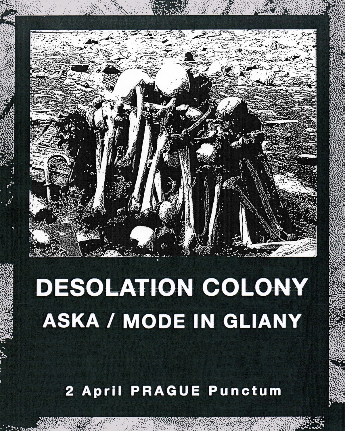 MENU presents:DESOLATION COLONY (US, Mannequin Records, [aufnahme + wiedergabe]ASKA (ISL)MODE IN GLIANY (FR) __________________________________________________________DESOLATION COLONY is the doom electronics project from Joshua Strachan (Vaura, Azar Swan, Blacklist). Incorporating elements of industrial, noise, power electronics, and EBM, Strachan absorbs our daily disintegrations and refracts them through aggressive sounds and relentless energy. Desolation Colony dropped two full-length releases in 2025, the first entitled “A Rapture of Blooming Revenge,“ via Phage Tapes and the second, “The Impossibility of Haunting a Barren World,” via Throne Heap. The first is an aggressive, beat-driven catalog of world-destruction and the retreat of the human animal from its failed attempts at dominance over nature. The second is a raw, power electronics-inflected slice of textural industrial reflecting on the disappearance of humanity at its own hands through technological warfare and genocide. Desolation Colony has played with like-minded acts such as Xeno &. Oaklander, Agent Side Grinder, and Years of Denial.The mind behind ASKA is Kristófer Páll. He considers himself primarily as poet, but the broadening of the meaning horizon of words through the power of music is equally important to him. He has outgrown Black Metal, and has found in electronic music the ideal platform on which to experiment with the spoken word. Thus this presentation of exclusively Islandic text is a highlight of Aska: Every single word falls as if bitterly broken out of a tortured soul at just the right place in the sound structure, and resonates the sadness that characterises Aska’s music. Aska has effectively united melancholic melodies with unsettling noise. A dense web of microsounds is the result, without disturbing the reduced overall effect of the music. Co-existential to the haunting atmosphere of analogue synths and vocals, the drum-machine enters the scene, and with skeletal rhythms challenges one to dance. Aska treads a wide spectrum. Influences of wave and industrial are condensed into perfect angst pop: Super dark, super sad, super beautiful!MODE IN GLIANY is the project of Boris Völt, a composer and performer from Brittany. Co-founder of the cult label Brume Records in the late 90s, his work spans industrial electronics, acousmatic art and a fiercely live-oriented approach to sound.His performances rely exclusively on analog and DIY gear, using live looping and sequencers to build tension in real time. Vocals are delivered in French, sometimes interwoven with Breton, over sharp synth riffs and sonic guitar textures. Visually, his shows are framed by black and white 3D graphics and lo-fi video collages made from found footage.His sets often include reworks of parallel projects like Irène de Milo or Cinématique Inverse, reshaped through the raw language of Mode in GliANY.www.menumusic.cz