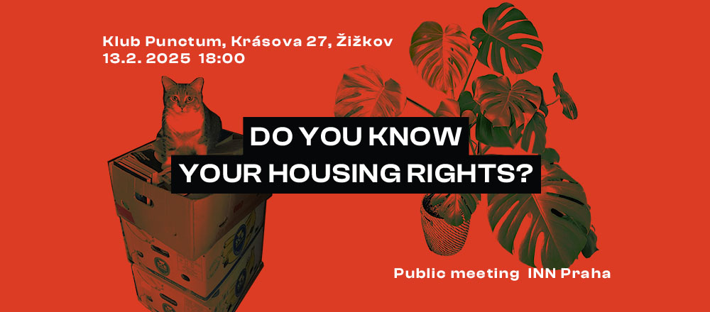 (EN) DO YOU KNOW YOUR HOUSING RIGHTS? „HOW TO RENT IN PRAGUE 101“ PUBLISHING EVENT Did you know you can get your deposit back even with an interest rate? Do you know what a contract should look like? And how to avoid getting scammed?We didn’t know either, but we decided to get educated and share our knowledge on issues that foreigners (and Czechs alike) face on the rental market in Prague. While the legal situation for tenants is overall precarious in the Czech Republic, you don’t have to accept this as your destiny! Come and check out together with us what you can do on your own AND together with other tenants. 𝙔𝙤𝙪 𝙖𝙧𝙚 𝙣𝙤𝙩 𝙖𝙡𝙤𝙣𝙚!The event will be in English with translation to Czech and Ukrainian. Thursday 13.02.2025 18:00 Klub Punctum – Krásova 27, Žižkov(УКР)ЧИ ЗНАЄТЕ ВИ СВОЇ ЖИТЛОВІ ПРАВА? “ЯК ОРЕНДУВАТИ У ПРАЗІ 101” ПУБЛІКАЦІЙНА ПОДІЯ Чи знаєте ви, що можете повернути свій депозит навіть із відсотковою ставкою? А знаєте, як має виглядати договір? І як уникнути шахраїв?Ми також не знали, але вирішили дізнатись та поділитися своїми знаннями щодо проблем, з якими стикаються іноземці (і чехи) на ринку оренди в Празі. Хоча правова ситуація для орендарів у Чеській Республіці загалом нестабільна, ви не повинні приймати це як свою долю! Приходьте і перевірте разом з нами, що ви можете зробити самостійно ТА разом з іншими орендарями. Ви не самотні!Захід відбуватиметься англійською мовою з перекладом на чеську та українську.Четвер 13.02.2025 18:00Klub Punctum – Krásova 27, Žižkov